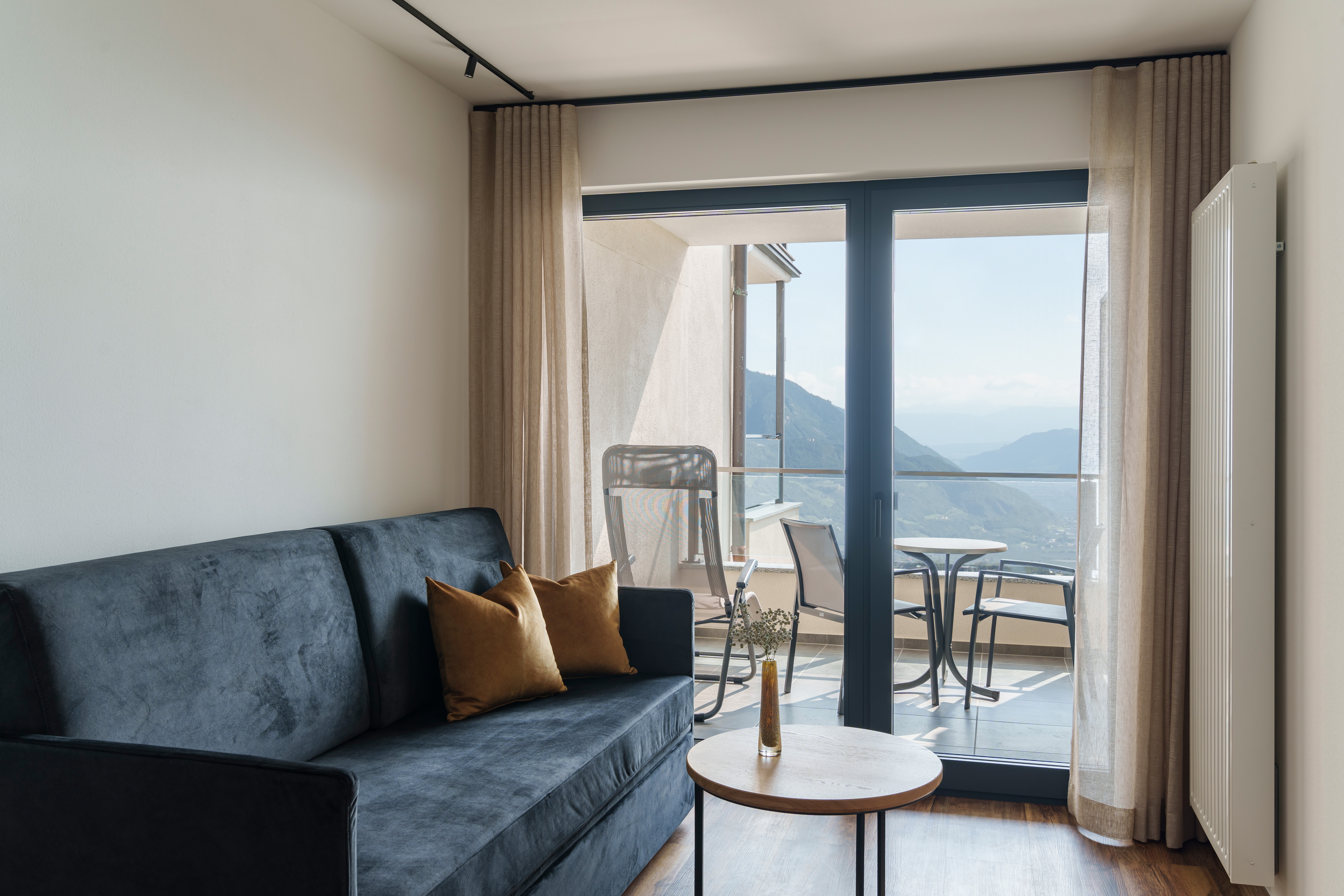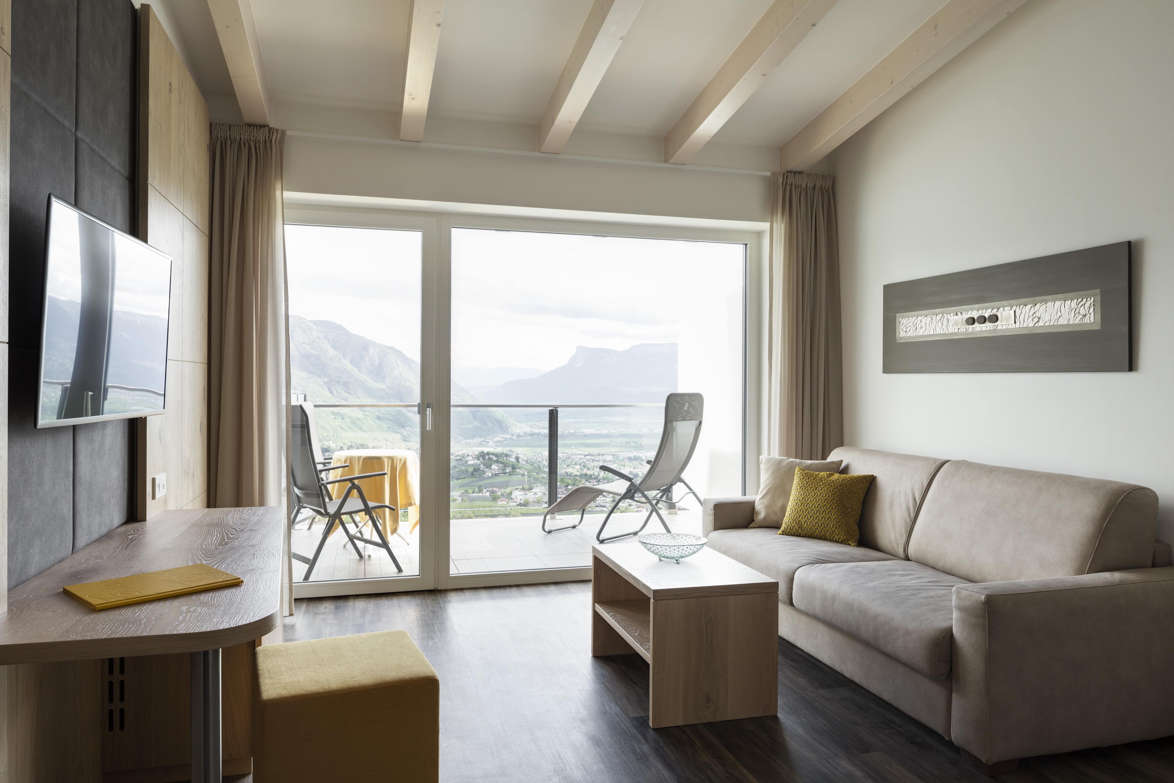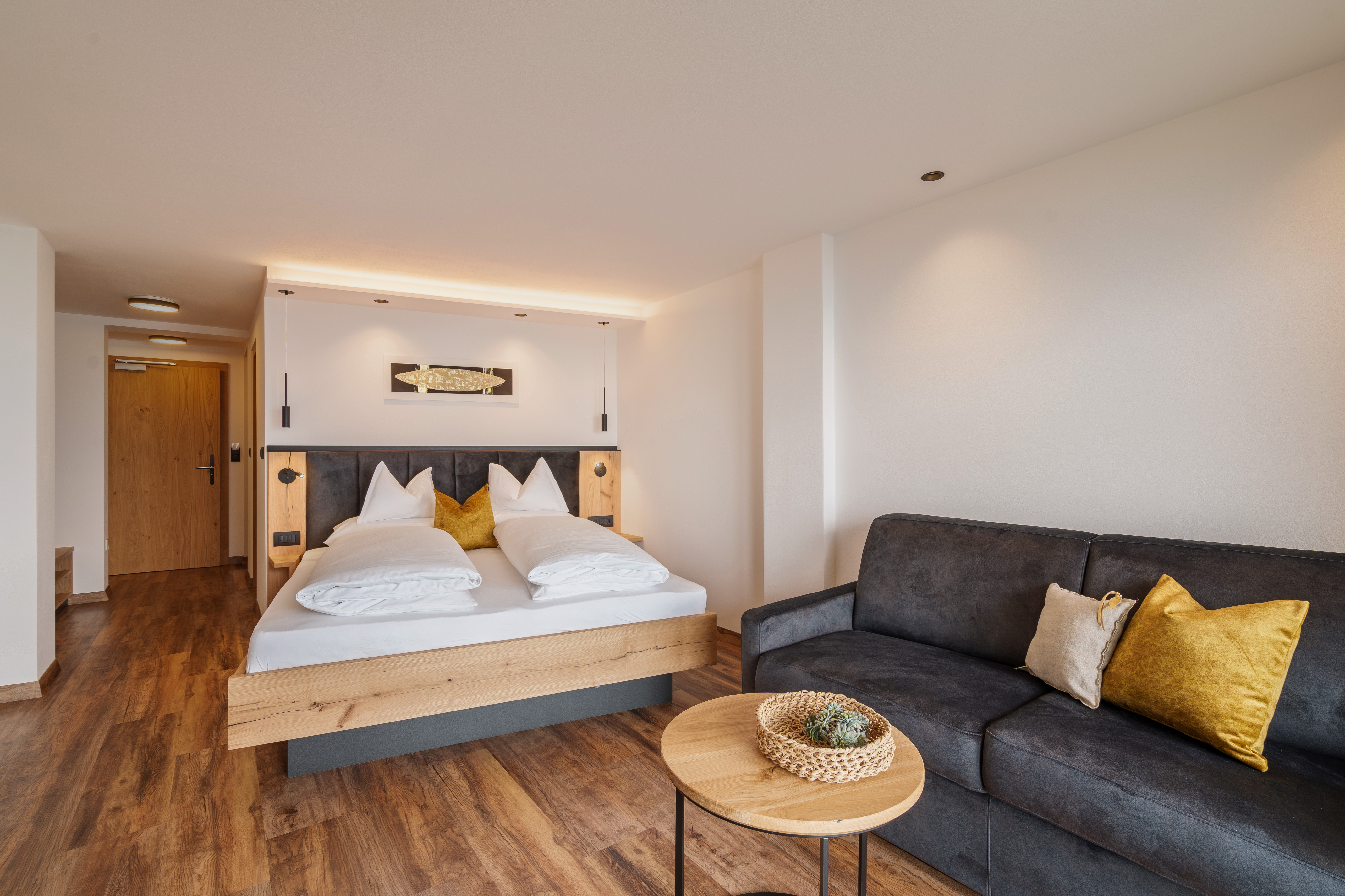 Zwei Bademäntel, Couch (Schlafcouch), Minibar, Telefon, Safe, Flat-TV, kostenloses W-LAN und Tiefgaragenstellplatz
